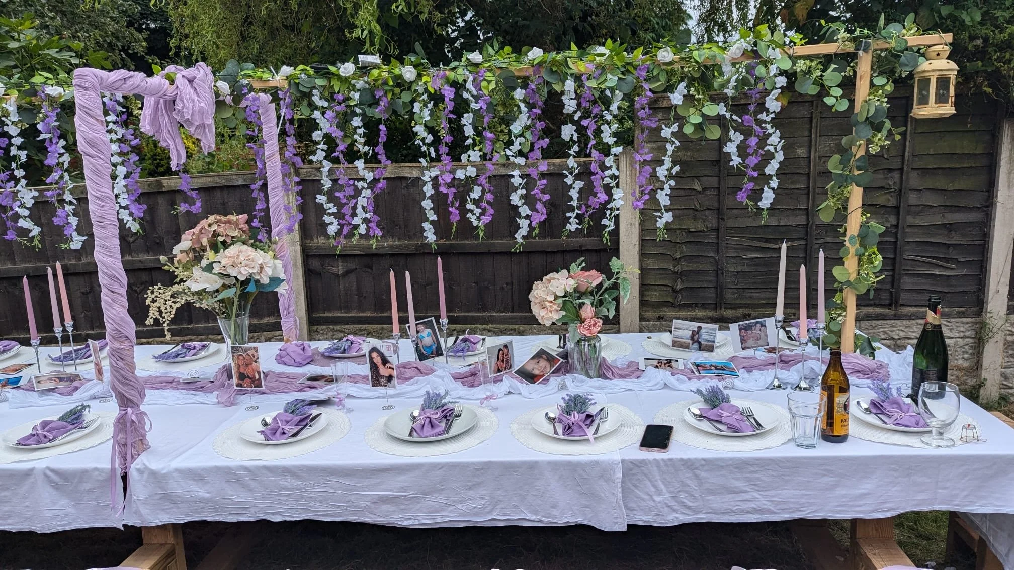 Client Cam: The finished daytime setup, with the table handcrafted by the clients and light guidance from me to bring their vision together.